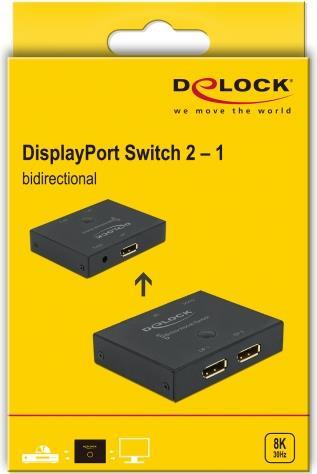 DeLock DisplayPort 2 - 1 Switch bidirectional 8K 30 Hz - Video/Audio-Schalter - 2 x DisplayPort - Desktop