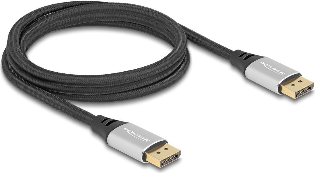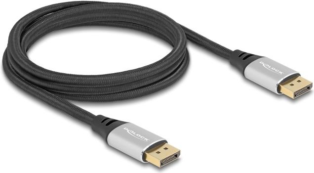 Delock - DisplayPort-Kabel - DisplayPort (M) zu DisplayPort (M) - DisplayPort 2,1 - 2,0m - vergoldete Kontakte, unterstützt 16K 60 Hz (15,360 x 8640), bis zu 40 Gbps Datentransferrate - Schwarz/Silber (80634)
