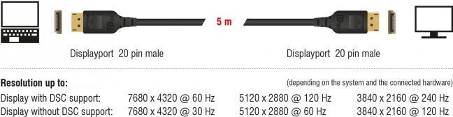 DeLOCK - DisplayPort-Kabel - DisplayPort (M) bis DisplayPort (M) - DisplayPort 1,4 - 5,0m - 8K Unterstützung - Schwarz (85663)