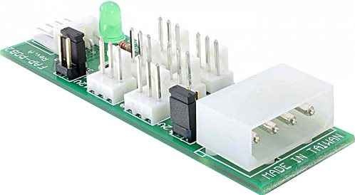 Mit diesem Adapter von Delock können Sie bis zu sechs zusätzliche Lüfter an Ihren Computer anschließen und die Drehzahl der Lüfter durch die Auswahl der Spannung variieren.