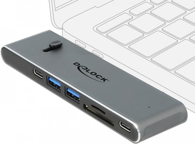 Diese Dockingstation von Delock kann an ein MacBook mit zwei nebeneinanderliegenden Thunderbolt 3 Ports, z. B. am MacBook Pro, angeschlossen werden. Zudem besteht die Möglichkeit einen der beiden USB-C Stecker in das Gehäuse einzuschieben, dann lässt sich die Dockingstation auch an andere Geräte wie z. B. Smartphone, Tablet oder Laptop anschließen. Am HDMI Ausgang kann ein Monitor mit 4K 30 Hz betrieben werden. Ein integrierter USB Type-C Port und zwei USB Typ-A Ports ermöglichen die Verwendung von Peripheriegeräten.