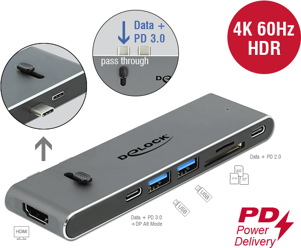 | Schnittstellen | 2 x USB-C - Eingang - 24-poliger USB-C 1 x Audio / Video - HDMI - 19-poliger HDMI Typ A 2 x USB 3.2 Gen 1 - 9-poliger USB Typ A 1 x USB-C 3.2 Gen 1 with Power Delivery 3.0 - 24-poliger USB-C 1 x USB-C 3.2 Gen 1 with Power Delivery 2.0 - 24-poliger USB-C |