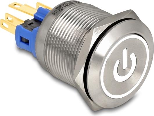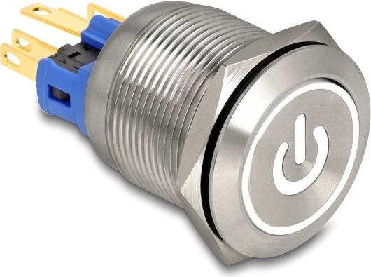 • Delock Drucktaster zum Einbau 22 mm 6 x Lötanschluss LED weiß Powersymbol+ (20986)