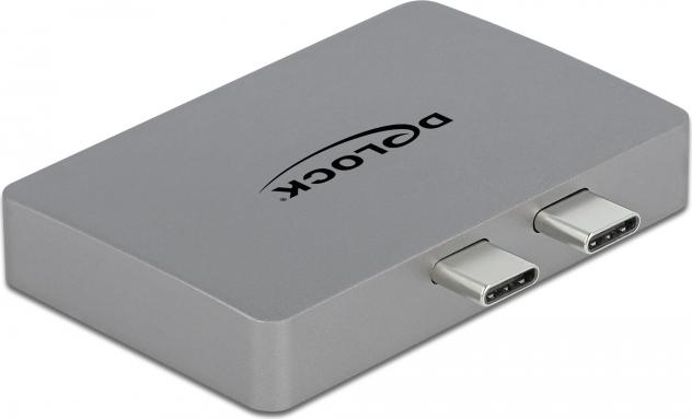 Dieser Adapter von Delock kann an ein MacBook mit zwei nebeneinander liegenden Thunderbolt 3 Ports, z. B. am MacBook Pro, angeschlossen werden. An den HDMI Ausgängen können zwei Monitore gleichzeitig mit 4K/60 Hz betrieben werden.