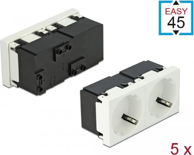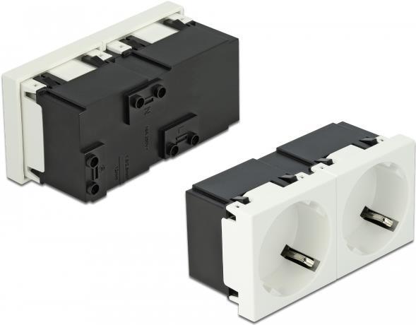 Delock Easy 45 - Steckdosenmechanismus - 2P - Typ F - mit Verschluss - 2 Steckdosen - 16 A - Wechselstrom 250 V - weiß, RAL 9003
