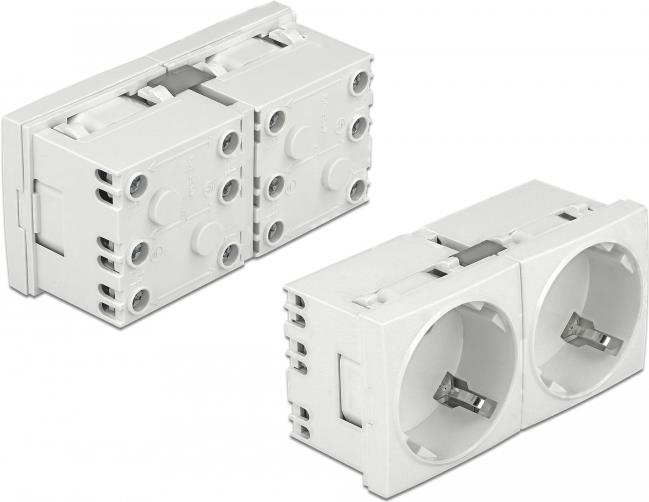 Diese Schutzkontakt-Steckdose von Delock stellt zwei CEE 7/3 Stromanschlüsse zur Verfügung. Durch den einfachen Einrastmechanismus sitzt die Steckdose fest an ihrem Platz und lässt sich bei Bedarf problemlos entfernen.