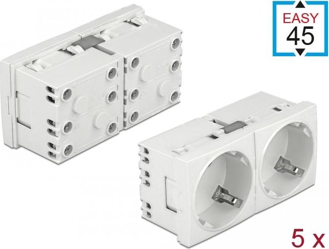 Delock Easy 45 Schutzkontakt-Steckdose 45°-Anordnung 2-fach erweiterbar 45 x 45 mm 5 Stück (81325)