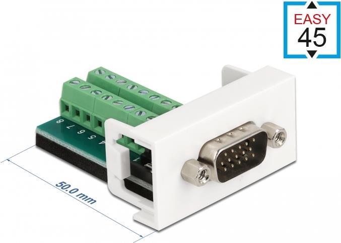 Dieses Easy 45 Modul von Delock stellt einen VGA Stecker zur Verfügung. Durch den einfachen Einrastmechanismus sitzt das Modul fest an seinem Platz und lässt sich bei Bedarf problemlos entfernen.