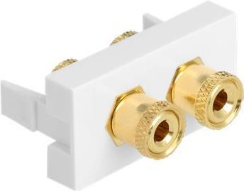 Dieses Easy 45 Modul von Delock stellt zwei Polklemmen zur Verfügung. Durch den einfachen Einrastmechanismus sitzt die Blende fest an ihrem Platz und lässt sich bei Bedarf problem- und werkzeuglos austauschen.