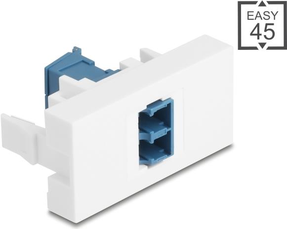 Das Delock Easy 45 Snap-In-Modul bietet eine zuverlässige und effiziente Lösung für Glasfaserverbindungen. Dieses Modul mit rechteckiger Form verfügt über einen LC-Duplex-Ausgangsanschluss und ein staubgeschütztes Design, das Schutz vor äußeren Verschmutzungen gewährleistet. Die Clip-In-Befestigung vereinfacht die Installation, während das Keramikmaterial der Hülse die Haltbarkeit erhöht. Mit einem integrierten Laserschutzklappschalter legt dieses Modul Wert auf Sicherheit während des Gebrauchs und eignet sich für verschiedene Netzwerk-Anwendungen.