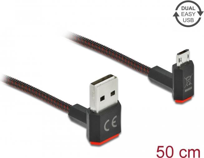 DeLOCK Easy - USB-Kabel - USB (M) nach oben/unten abgewinkelt, doppelseitig bis Micro-USB Typ B (M) nach oben/unten abgewinkelt, doppelseitig - USB2.0 - 50cm - Schwarz (85265)