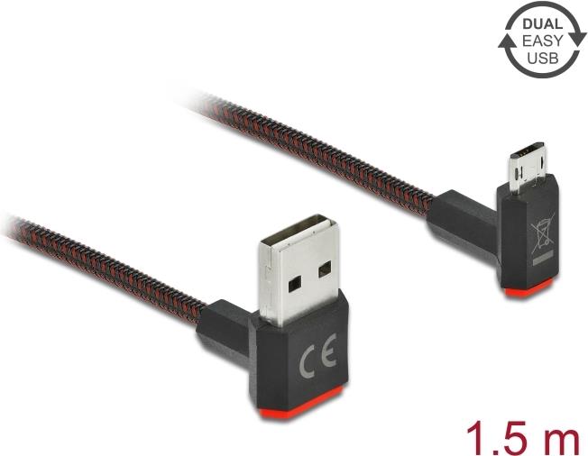 DeLOCK Easy - USB-Kabel - USB (M) nach oben/unten abgewinkelt, doppelseitig bis Micro-USB Typ B (M) nach oben/unten abgewinkelt, doppelseitig - 1,5m - Schwarz (85267)