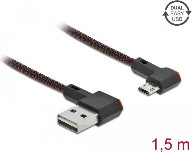 Delock EASY-USB 2.0 Kabel Typ-A Stecker zu EASY-USB Typ Micro-B Stecker gewinkelt links / rechts 1,5 m schwarz (85272)