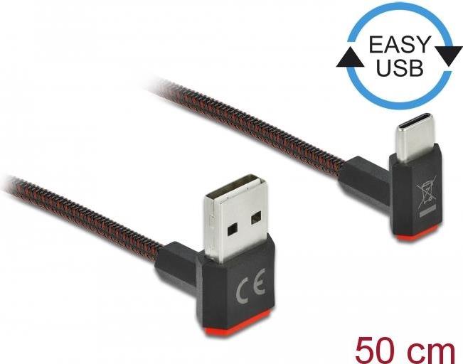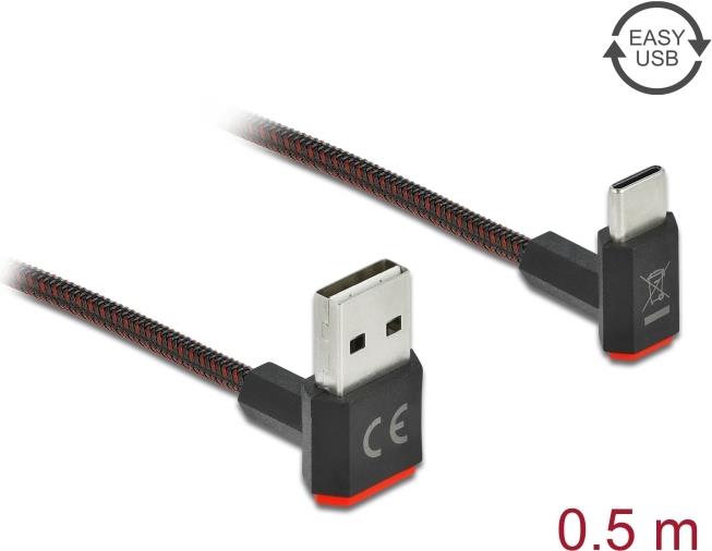 Delock EASY-USB 2.0 Kabel Typ-A Stecker zu USB Type-C™ Stecker gewinkelt oben / unten 0,5 m schwarz (85275)