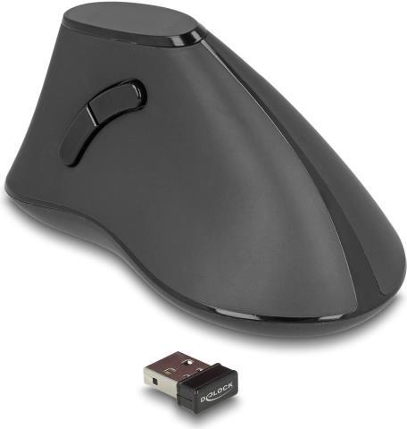 DeLOCK Ergonomic - Maus - ergonomisch - Für Rechtshänder - optisch - 5 Tasten - kabellos - 2,4 GHz - kabelloser Empfänger (USB) - Schwarz - retail (12622)
