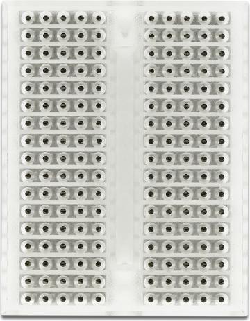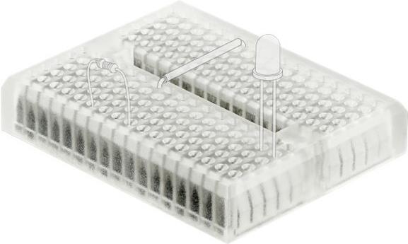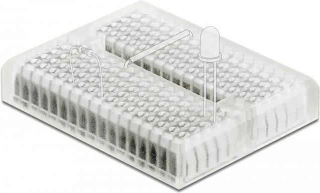 Dieses Experimentier-Steckbrett von Delock ermöglicht einen schnellen lötfreien Aufbau von kleinen elektronischen Schaltungen. Die Schaltung kann durch einfaches Umstecken der Bauteile geändert werden.