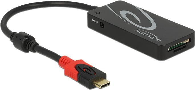 Dieser USB Hub von Delock wird an einen Computer über den USB Type-C Anschluss angeschlossen. Er erweitert den Computer um drei USB Typ-A Anschlüsse sowie um zwei Slots für SD und Micro SD Speicherkarten. Wenn der Hub an einen Computer mit einer USB 3.1 Schnittstelle angeschlossen wird, so wird Maximalstrom von 900 mA auf die USB Anschlüsse und den Card Reader aufgeteilt. Bei Bedarf kann ein optionales Netzteil oder ein optionales Stromkabel an die Strombuchse angeschlossen werden.