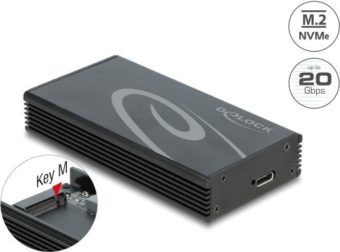 DeLOCK - Speichergehäuse - M.2 NVMe Card / PCIe (NVMe) - 20 Gbit/s - USB 3,2 (Gen 2x2) - Schwarz (42000)