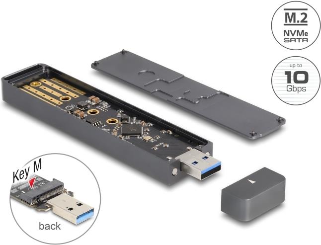 Delock - Speichergehäuse - externes Gehäuse für M.2 NVME PCIe SSD oder SATA SSD mit USB 10 Gbps Typ-A-Stecker - M.2 NVMe Card / SATA 6Gb/s - USB 3.2 (Gen 2) |
