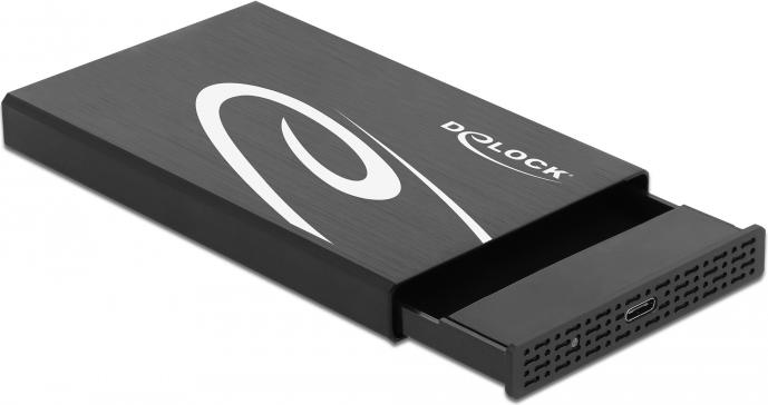 Dieses Aluminium-Gehäuse von Delock dient dem Einbau einer 2.5? SATA Festplatte oder SSD. Trotz der schlanken Bauform können Festplatten bis zu einer Höhe von 9,5 mm eingebaut werden.Produkttext[/head]KurzbeschreibungDieses Aluminium-Gehäuse von Delock dient dem Einbau einer 2.5? SATA Festplatte oder SSD. Trotz der schlanken Bauform können Festplatten bis zu einer Höhe von 9,5 mm eingebaut werden.Volle Geschwindigkeit dank SuperSpeed USB 10 GbpsDank des VIA Chipsatzes unterstützt dieses Festplattengehäuse SuperSpeed USB mit bis zu 10 Gbps Übertragungsgeschwindigkeit. Somit kann die volle SATA 6 Gb/s Übertragungsrate der Festplatte ausgenutzt werden.Volle Konnektivität dank USB Type-C PortÜber eine am Gehäuse verbaute USB Type-C Buchse wird das externe Gehäuse mit einem PC oder Notebook verbunden. Das beiliegende USB Type-C zu USB Typ-A Kabel ermöglicht den Anschluss an eine freie USB Typ-A Buchse. Selbstverständlich kann das Gehäuse auch via optionalem USB Type-C Kabel an eine freie USB Type-C Buchse oder einen freien Thunderbolt Port angeschlossen werden.[head]Hauptmerkmale