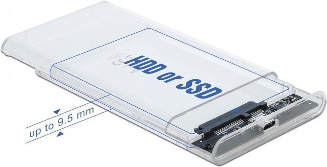 DeLOCK 2,5 External Enclosure SATA HDD > USB3.0 - Speichergehäuse - 2.5" (6,4 cm) - SATA 6Gb/s - 6 Gbit/s - USB 3,1 (Gen 2) - durchsichtig (42617)