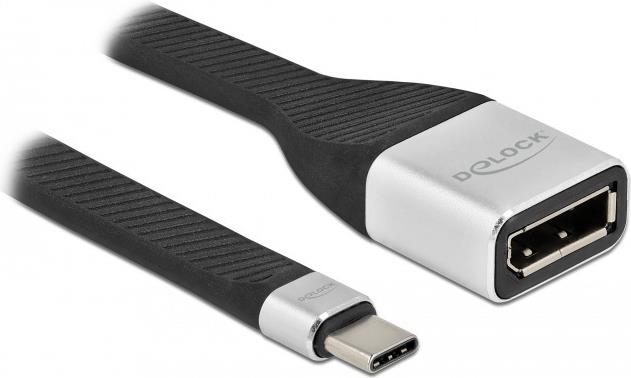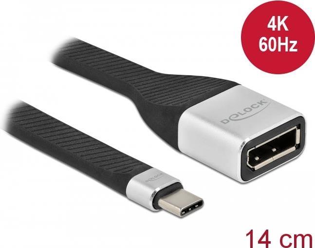 Delock - DisplayPort-Adapter - USB-C (M) bis DisplayPort (W) - Displayport 1,2/Thunderbolt 3 - 14cm - flach, unterstützt 4K 60 Hz (3840 x 2160) - Schwarz (86934)