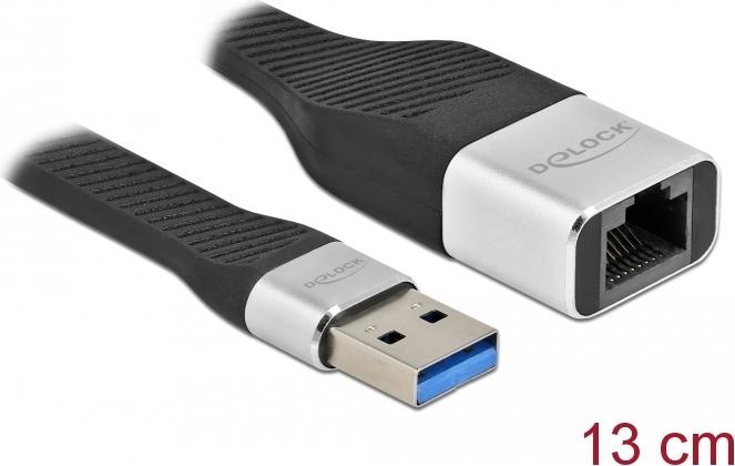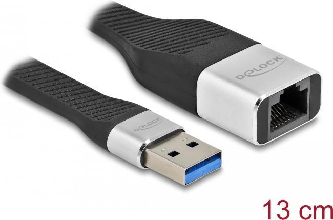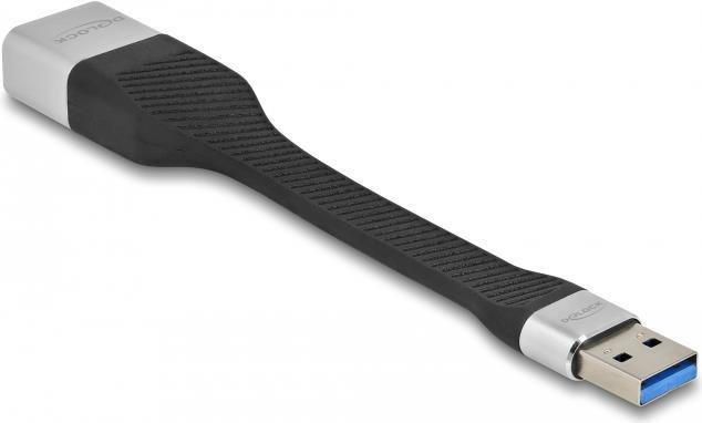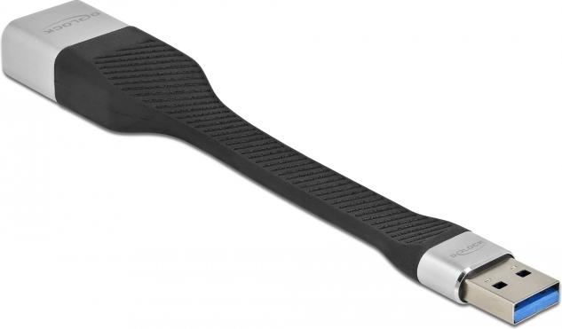 Der Adapter von Delock erweitert einen PC oder ein Notebook um eine Netzwerkschnittstelle über den USB Typ-A Anschluss. Das Kabel zeichnet sich durch seinen besonderen Aufbau aus. Statt normaler Kupferdrähte befindet sich im Inneren des Kabels eine flexible Platine, die auch FPC (Flexible Printed Circuit) genannt wird. Dadurch ist das Kabel äußerst biegsam und trotzdem robust.