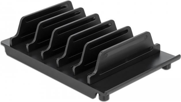 Dieser Ständer von Delock bietet eine hervorragende Möglichkeit, bis zu 6 verschiedene Geräte, z. B. Tablets oder Smartphones, gleichzeitig aufzustellen und dient als praktische Ablage beim Aufladen.