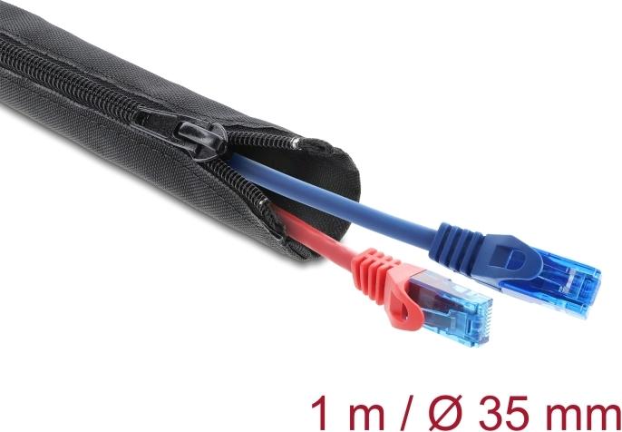 DeLOCK Woven Sleeve with zip fasterner heat-resistant - Geflechtschlauch - 1,0m - Schwarz (19218)