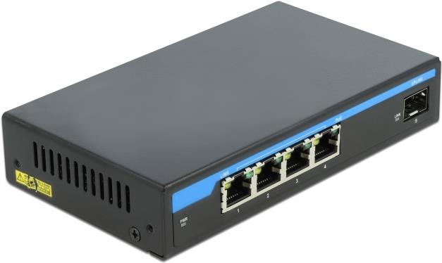 DeLOCK - Switch - 4 x 10/100/1000 (PoE+) + 1 x Gigabit SFP - Desktop - PoE+ (60 W)