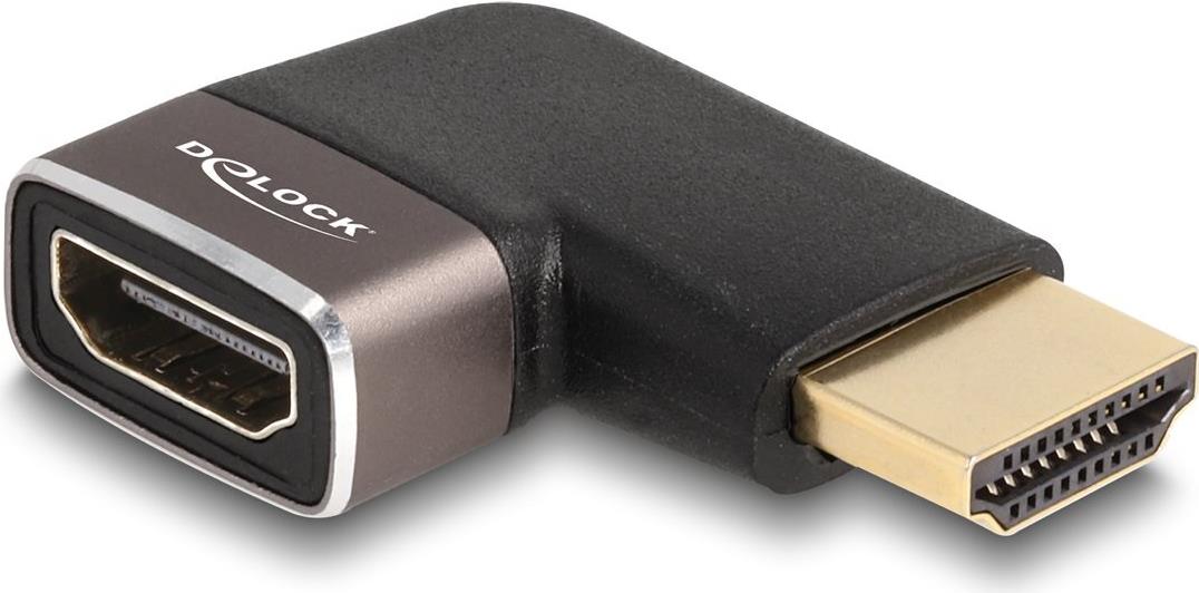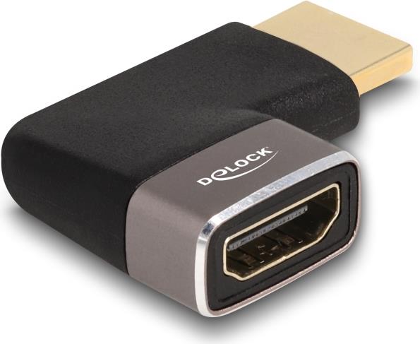 Delock - Highspeed - HDMI-Adapter mit Ethernet - HDMI männlich zu HDMI weiblich links abgewinkelt - Schwarz/Grau - unterstützt 8K 60 Hz (7680 x 4320) (60082)
