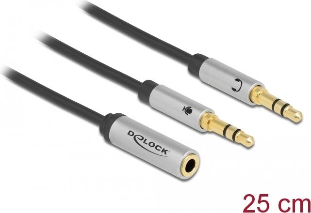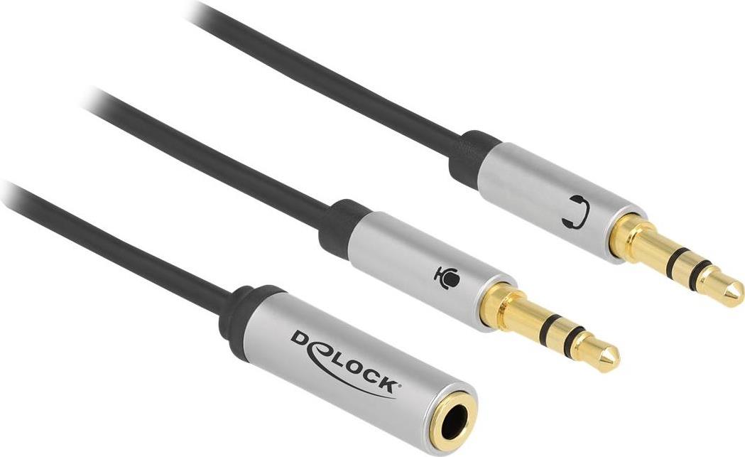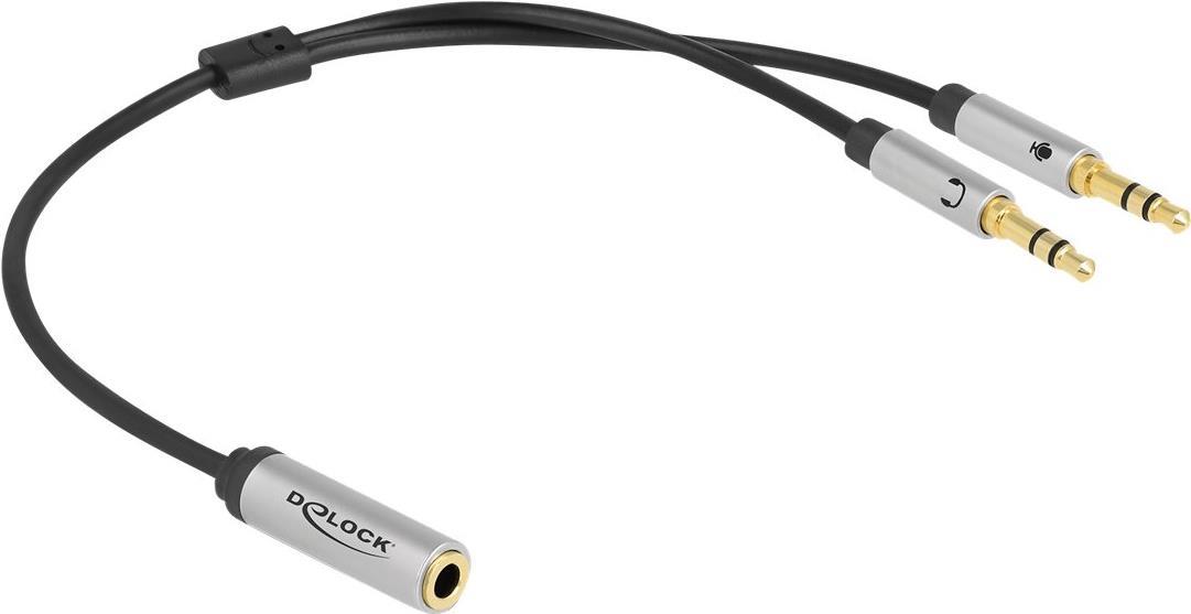 Delock - Headsetadapter - mini-phone stereo 3,5 mm 4-pole weiblich bis Stereo Mini-Klinkenstecker männlich - 27cm - Schwarz (66740)