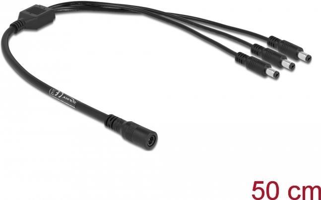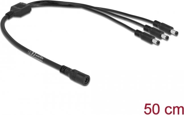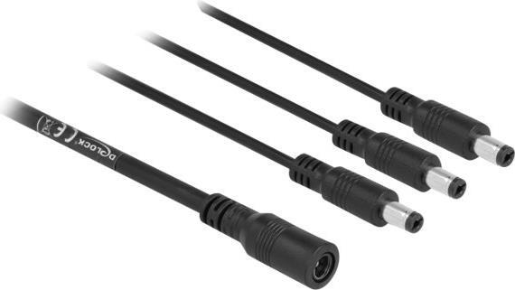 Dieses Verteilerkabel von Delock dient zum Anschluss von drei Geräten, welche Kleinspannung benötigen, wie z. B. Kameras oder LED-Streifen an ein Netzteil mit DC-Anschluss.