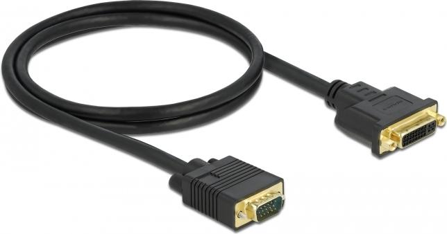 DeLOCK - Display-Verlängerungskabel - Single Link - DVI-I (W) bis HD-15 (VGA) (M) - 1,0m - Daumenschrauben - Schwarz (86756)