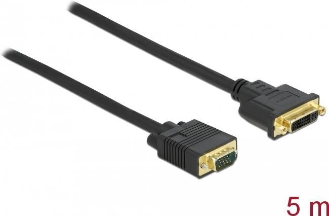 DeLOCK - Display-Verlängerungskabel - Single Link - DVI-I (W) bis HD-15 (VGA) (M) - 5,0m - Daumenschrauben - Schwarz (86759)