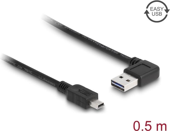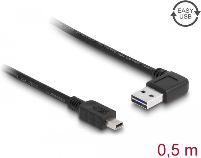 Delock Kabel EASY-USB 2.0 Typ-A Stecker gewinkelt links / rechts > USB 2.0 Typ Mini-B Stecker 0,5 m (85175)