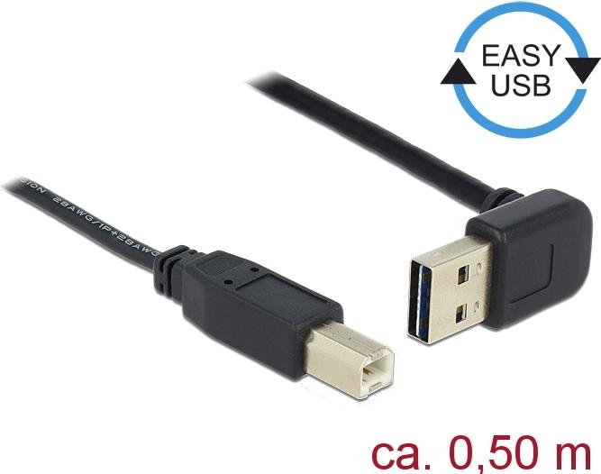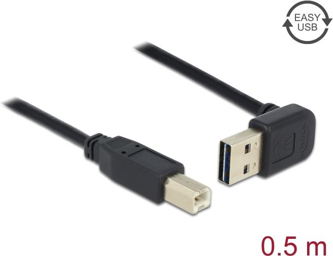 DeLOCK Easy - USB-Kabel - USB (M) 90° abgeschrägt, umkehrbar bis USB Type B (M) gerade - USB2.0 - 50cm - Schwarz (85183)