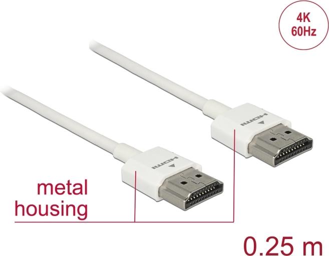 DeLOCK High Speed HDMI with Ethernet - HDMI mit Ethernetkabel - HDMI (M) bis HDMI (M) - 25cm - Dreifachisolierung - weiß - 4K Unterstützung (85120)