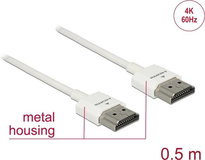 DeLOCK High Speed HDMI with Ethernet - HDMI mit Ethernetkabel - HDMI (M) bis HDMI (M) - 50cm - Dreifachisolierung - weiß - 4K Unterstützung (85121)