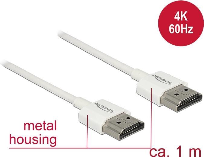 DeLOCK High Speed HDMI with Ethernet - HDMI mit Ethernetkabel - HDMI (M) bis HDMI (M) - 1,0m - Dreifachisolierung - weiß - 4K Unterstützung (85122)