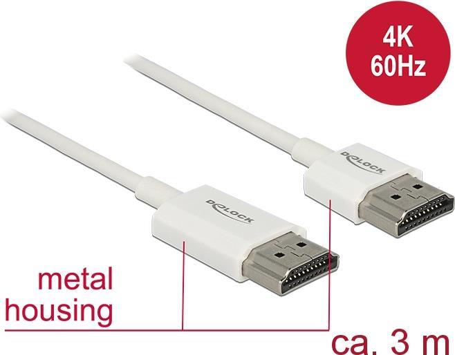 DeLOCK High Speed HDMI with Ethernet - HDMI mit Ethernetkabel - HDMI (M) bis HDMI (M) - 3,0m - Dreifachisolierung - weiß - 4K Unterstützung (85138)