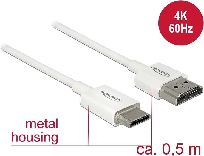 DeLOCK High Speed HDMI with Ethernet - HDMI mit Ethernetkabel - HDMI (M) bis mini HDMI (M) - 50cm - Dreifachisolierung - weiß - 4K Unterstützung (85141)