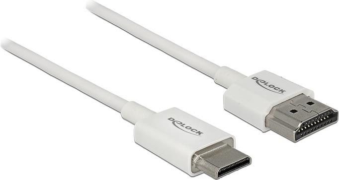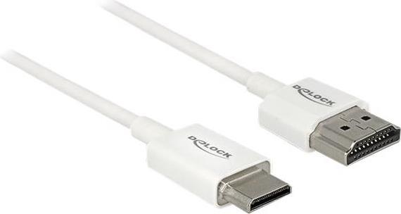 DeLOCK Slim High Quality - HDMI mit Ethernetkabel - HDMI (M) bis mini HDMI (M) - 1,5m - dreifach abgeschirmtes Twisted-Pair-Kabel - weiß - 4K Unterstützung (85143)