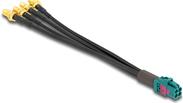 Das Netzwerkkabel von Delock ist für die Anforderungen der Hochgeschwindigkeitsdatenübertragung ausgelegt und bietet Geschwindigkeiten von bis zu 28 Gbit/s. Dies macht es zu einer idealen Lösung für Anwendungen, die eine schnelle und zuverlässige Verbindung erfordern. Das Kabel verfügt über einen strapazierfähigen Kunststoffmantel und vermessingte Stecker, die sicherstellen, dass es den harten Anforderungen des täglichen Gebrauchs standhält und dabei eine optimale Leistung beibehält. Darüber hinaus minimiert die fortschrittliche Flüssigkristall-Polymer-Abschirmung Interferenzen und bewahrt die Signalintegrität über alle Verbindungen hinweg. Mit einem vierfachen Mini-FAKRA-Z-Stecker auf der einen Seite und vier SMA-B-Steckern auf der anderen Seite bietet es vielseitige Anschlussmöglichkeiten für eine Vielzahl von Netzwerkkonfigurationen.