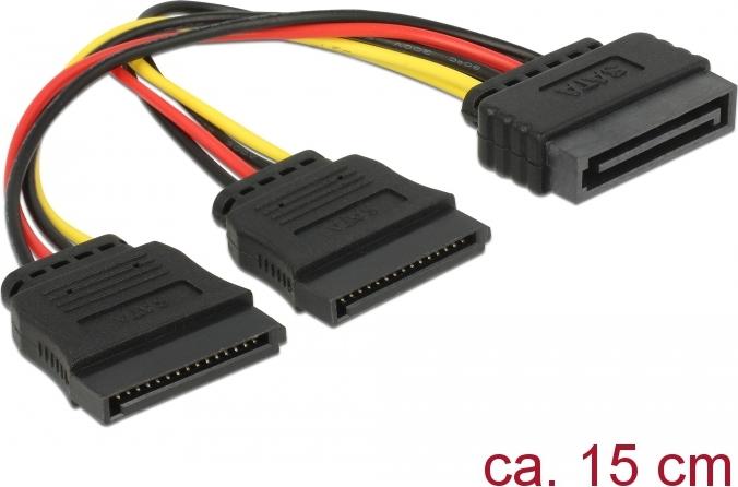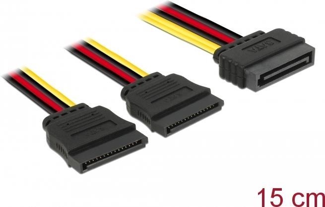 DeLOCK - Netz-Splitter - SATA-Stromstecker (M) gerade bis SATA-Stromstecker (W) gerade - 15cm - Schwarz, Gelb, Rot (60174)