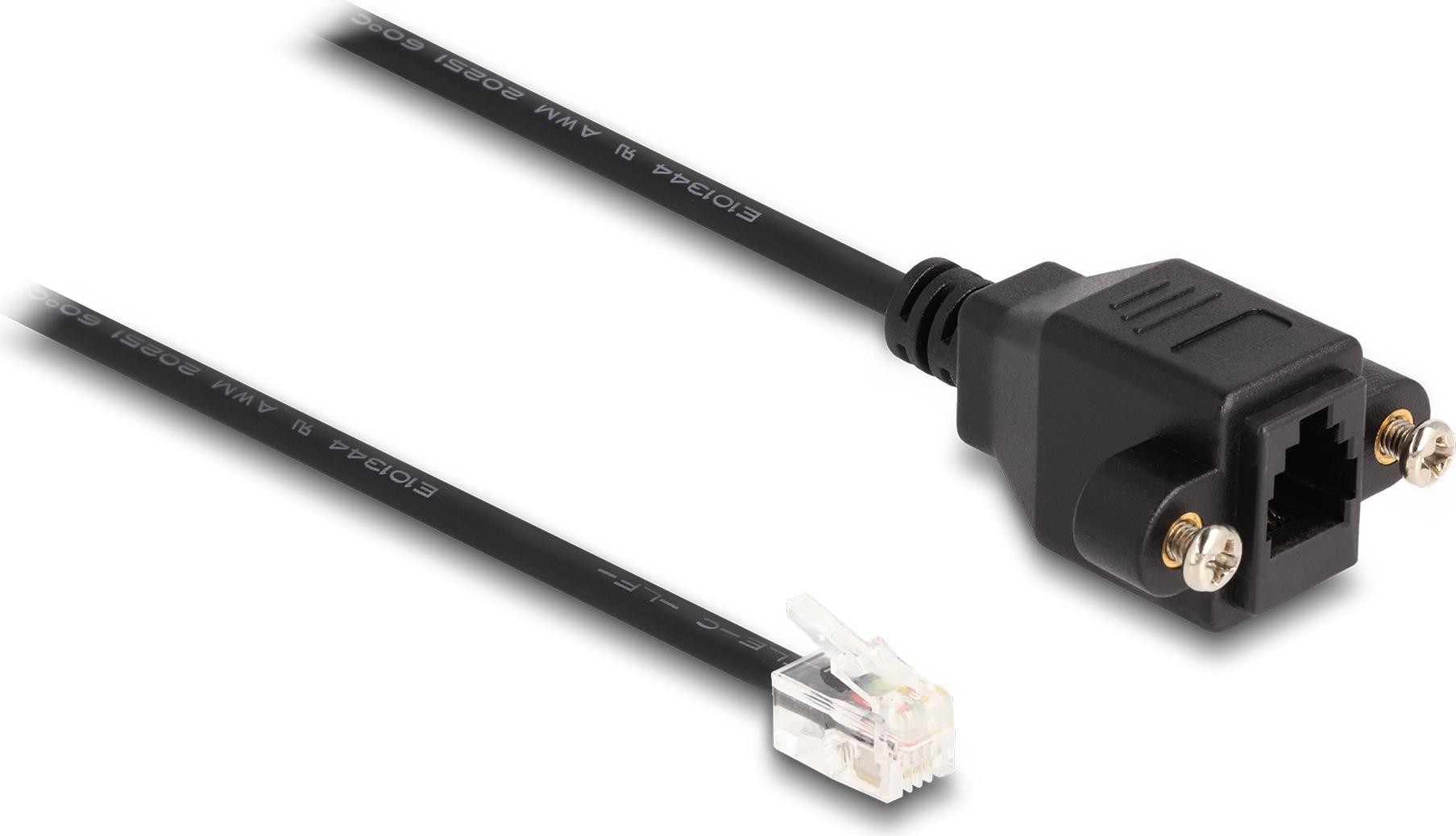 Delock Kabel RJ10 Stecker zu RJ10 Buchse zum Einbau 30 cm schwarz (87956)