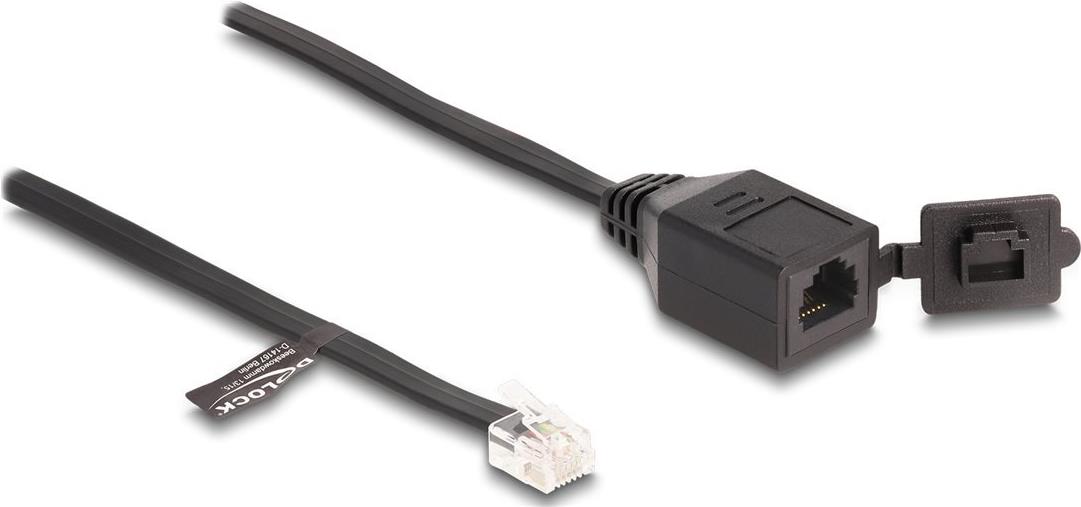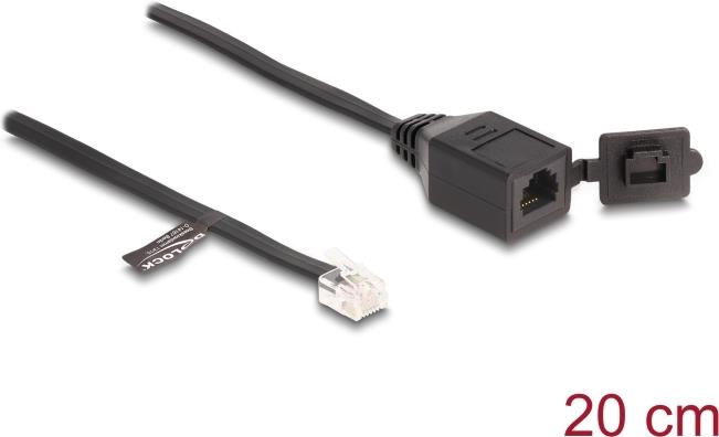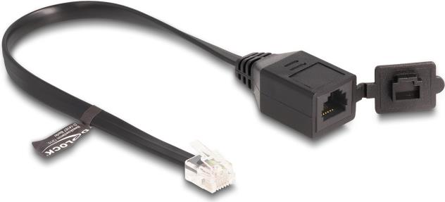 Delock Kabel RJ12 Stecker zu RJ12 Buchse mit Verschlusskappe 20 cm schwarz (88009)