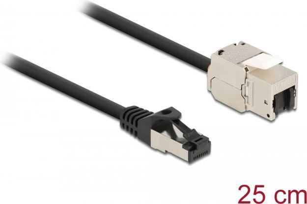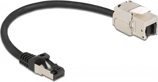 Delock - Netzwerkkabel - RJ-45 (M) bis RJ-45 (W) Keystone - 25cm - S/FTP - CAT 6a - geschirmt, ohne Haken - Schwarz (87022)