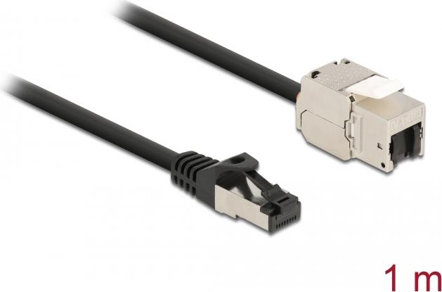 Delock - Netzwerkkabel - RJ-45 (M) bis RJ-45 (W) Keystone - 1,0m - S/FTP - CAT 6a - geschirmt, ohne Haken - Schwarz (87027)