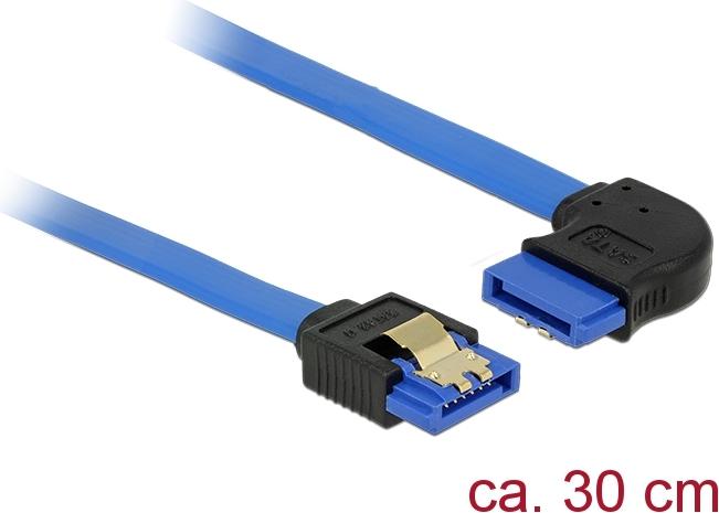 Delock Kabel SATA 6 Gb/s Buchse gerade > SATA Buchse rechts gewinkelt 30 cm blau mit Goldclips (84990)